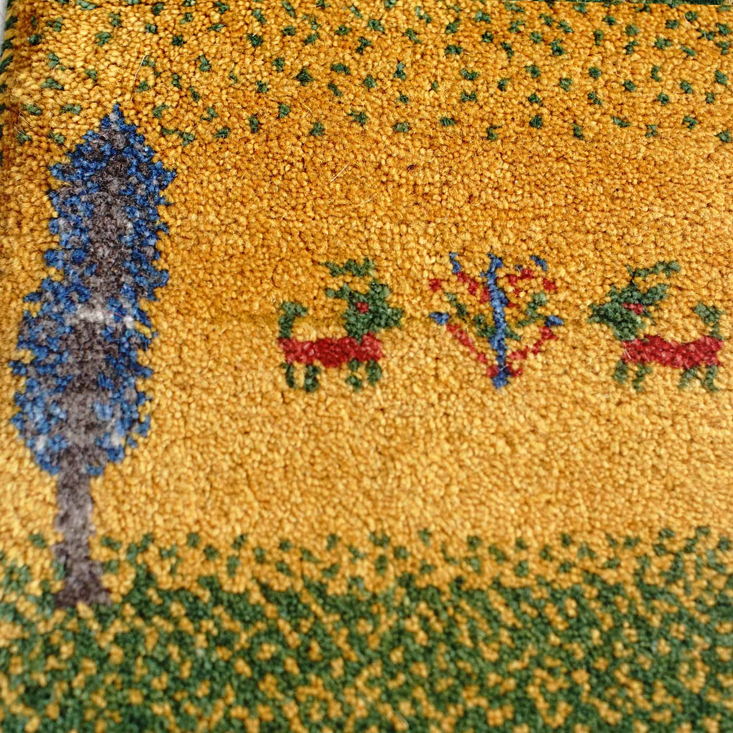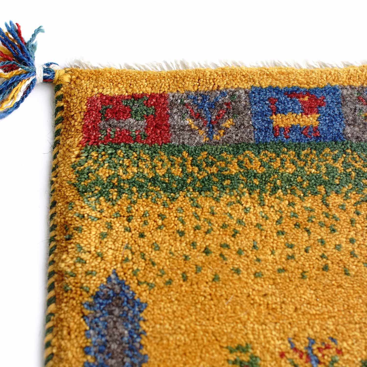 ギャッベ(ギャベ)はイラン南西部、ザクロス山脈から南部の高原で遊牧生活をしているカシュガイ族が織る1つ1つが手作りの毛足の長い絨毯です。冬は暖かく、夏も汗がべたつかず、1年を通じて快適です。また天然染料で染められており、小さなお子様がいるご家庭でも安心してお使いいただけます。
