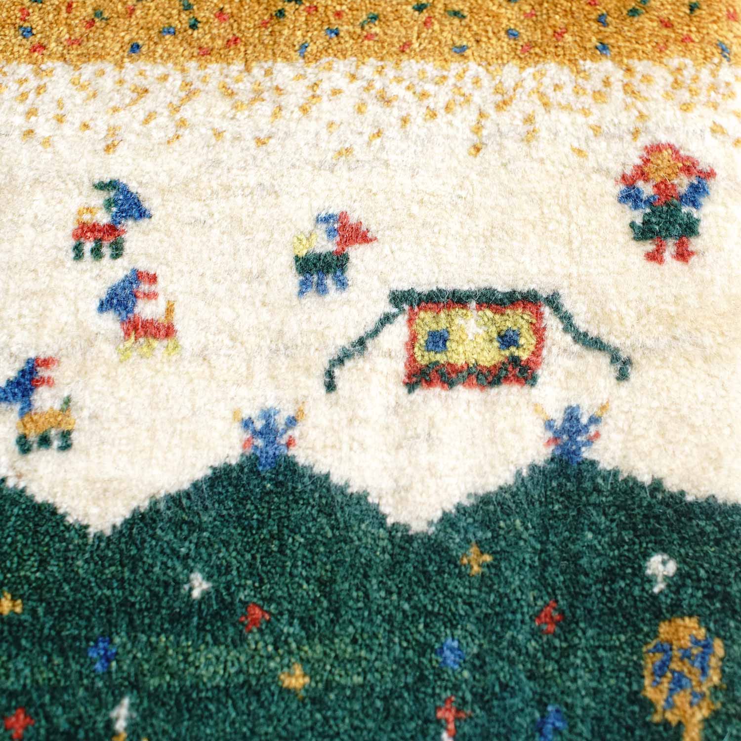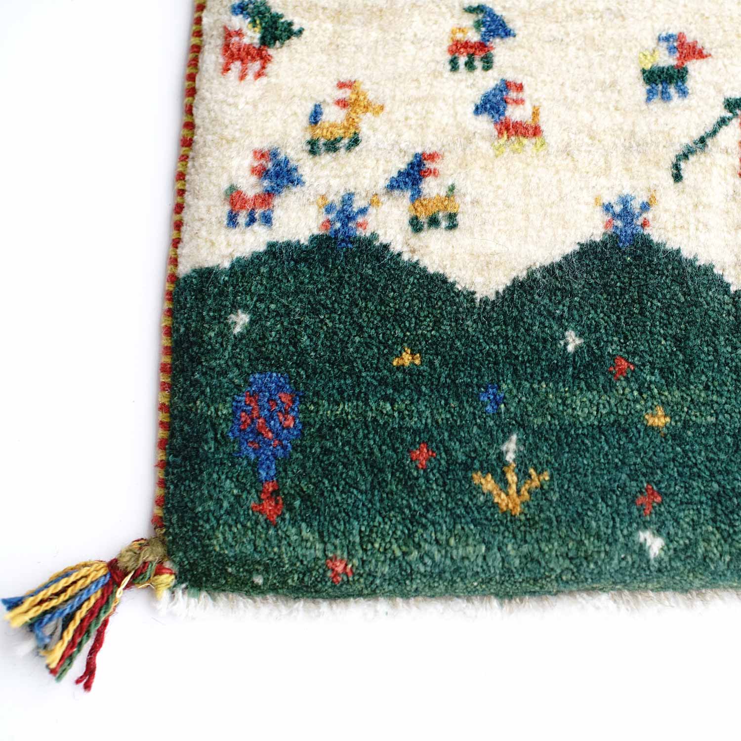 ギャッベ(ギャベ)はイラン南西部、ザクロス山脈から南部の高原で遊牧生活をしているカシュガイ族が織る1つ1つが手作りの毛足の長い絨毯です。冬は暖かく、夏も汗がべたつかず、1年を通じて快適です。また天然染料で染められており、小さなお子様がいるご家庭でも安心してお使いいただけます。