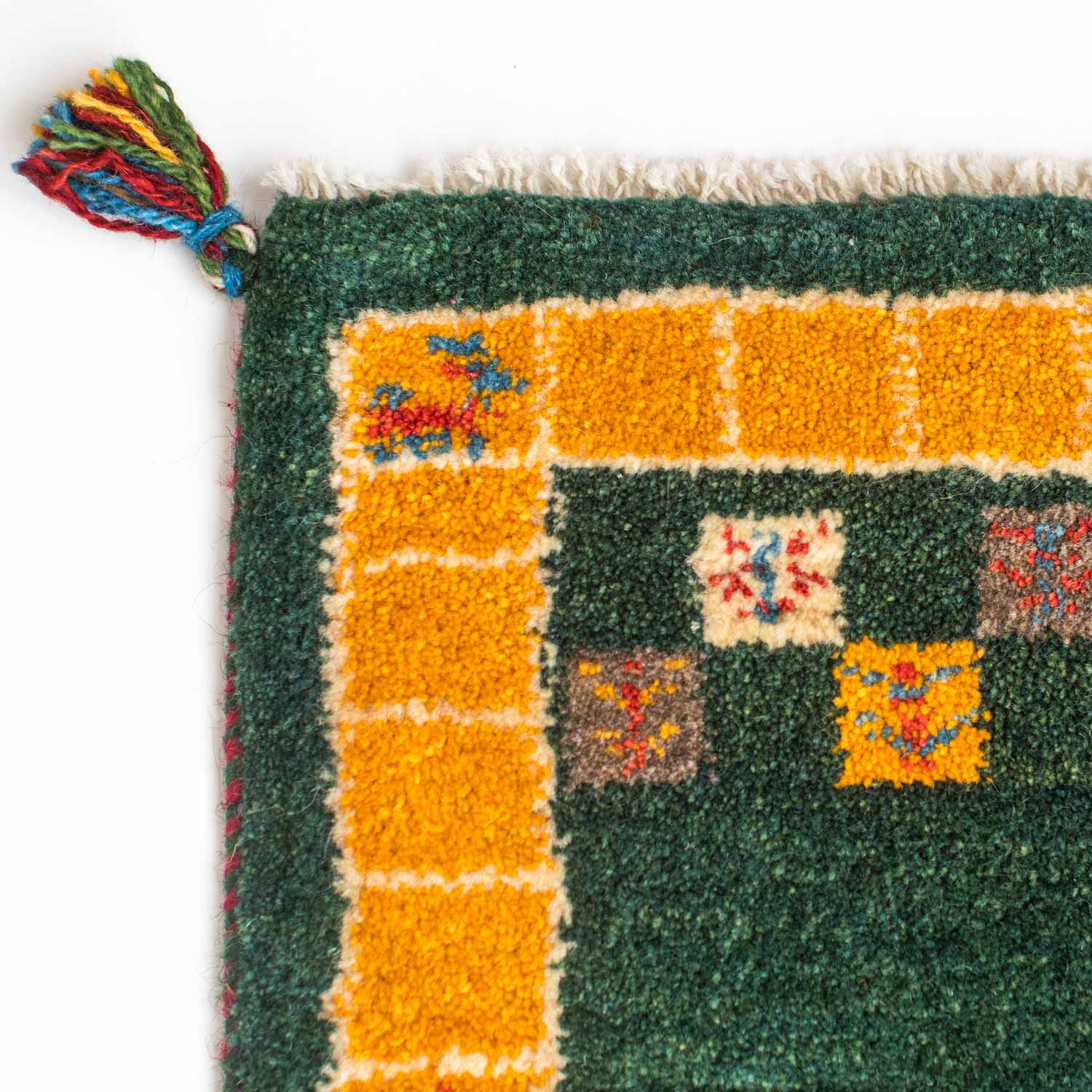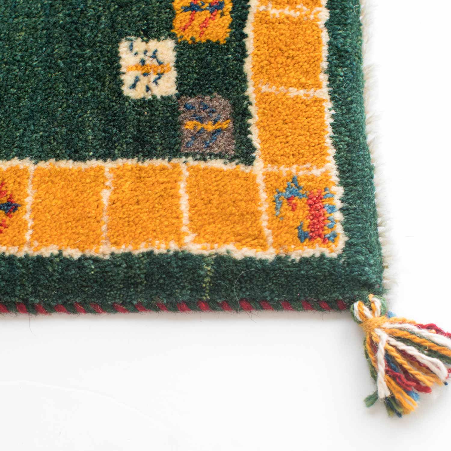 ギャッベ(ギャベ)はイラン南西部、ザクロス山脈から南部の高原で遊牧生活をしているカシュガイ族が織る1つ1つが手作りの毛足の長い絨毯です。冬は暖かく、夏も汗がべたつかず、1年を通じて快適です。また天然染料で染められており、小さなお子様がいるご家庭でも安心してお使いいただけます。