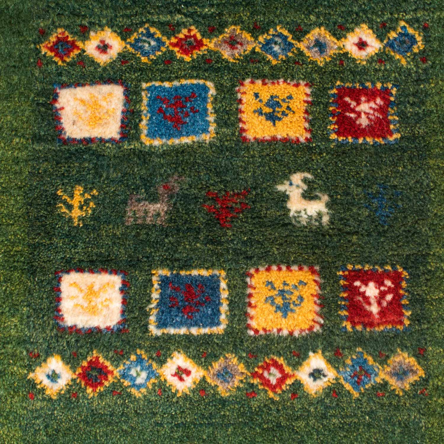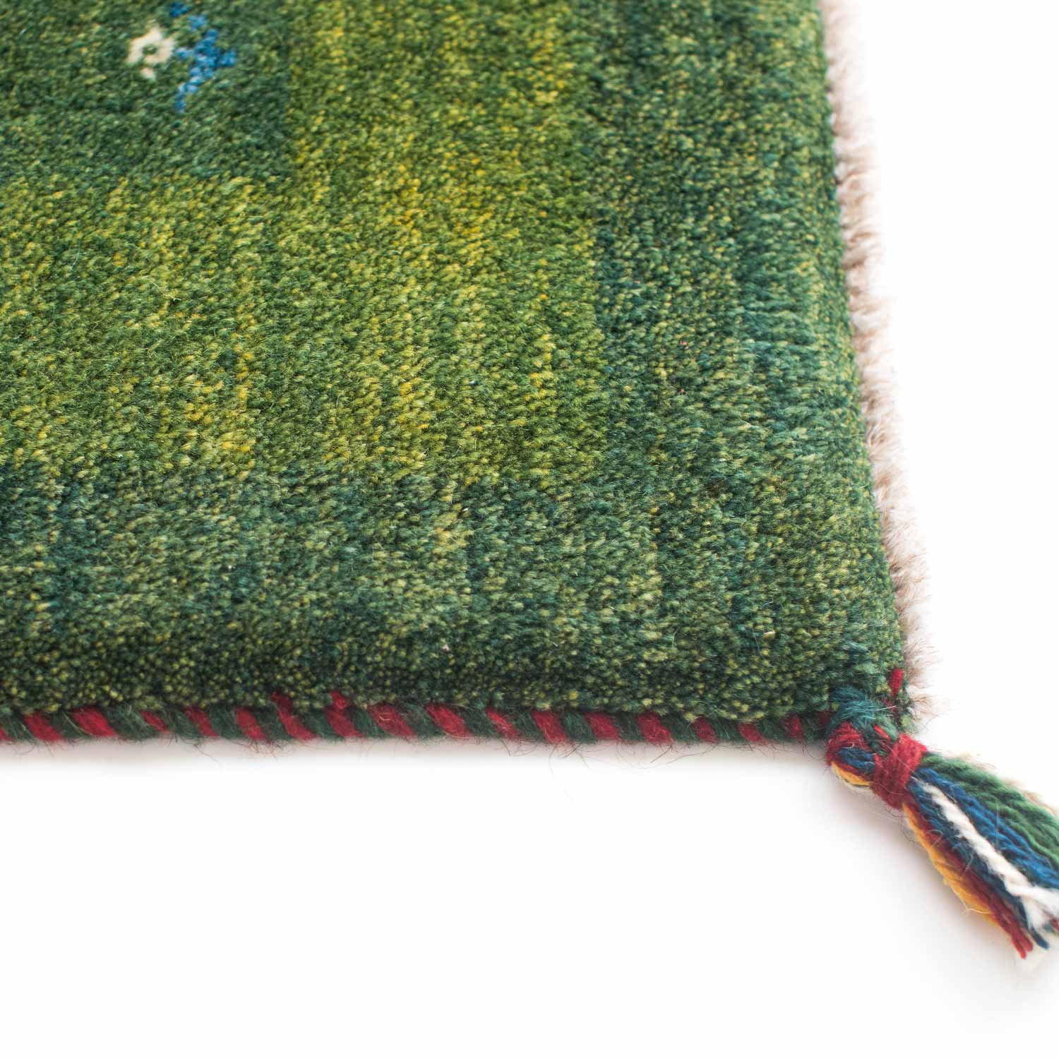 ギャッベ(ギャベ)はイラン南西部、ザクロス山脈から南部の高原で遊牧生活をしているカシュガイ族が織る1つ1つが手作りの毛足の長い絨毯です。冬は暖かく、夏も汗がべたつかず、1年を通じて快適です。また天然染料で染められており、小さなお子様がいるご家庭でも安心してお使いいただけます。