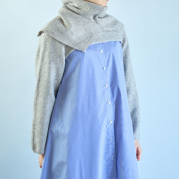 今季はカラーの異なるカシミア&ウールの3本の糸を一つに摺り合わせた3杢糸で編み立てることにより、奥行きのある表情がうまれ、やさしく温かみのあるニットに仕上がっています。