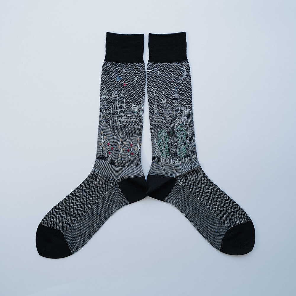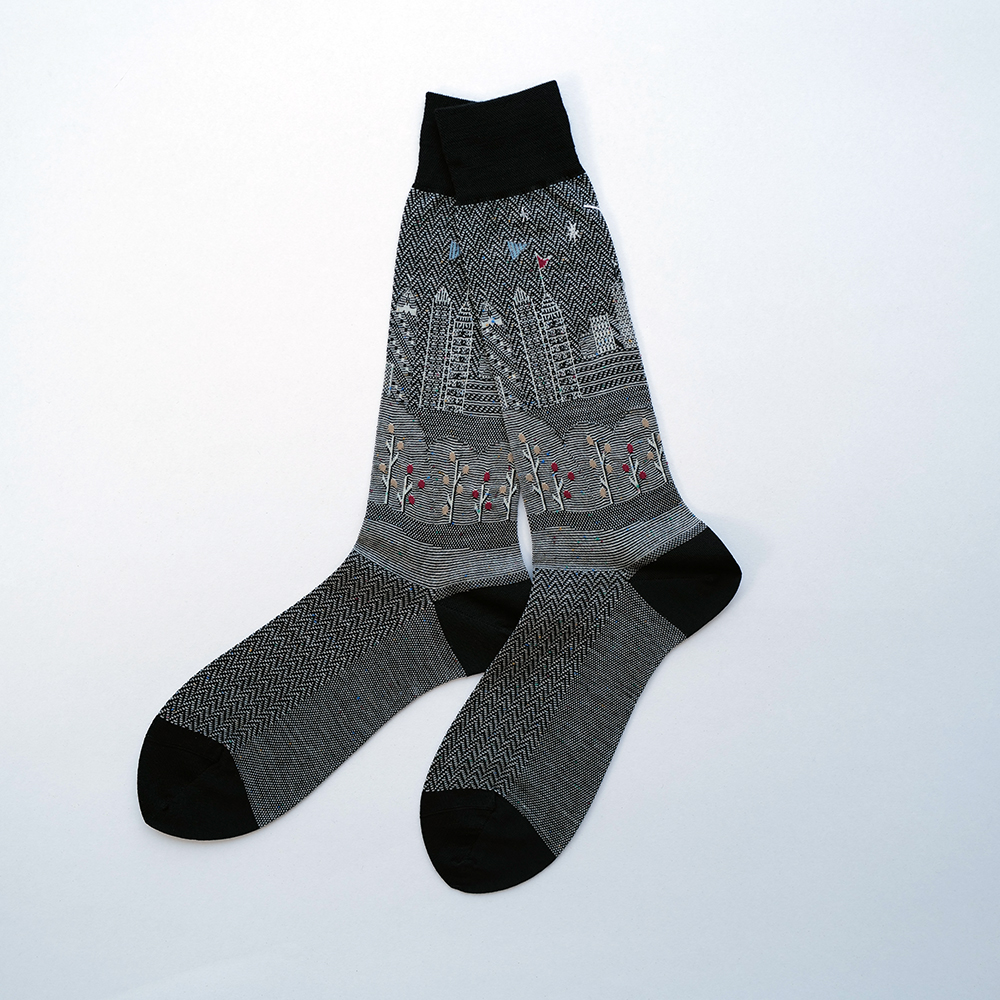 メンズソックス AM3-808 CITY SCAPE BLACK