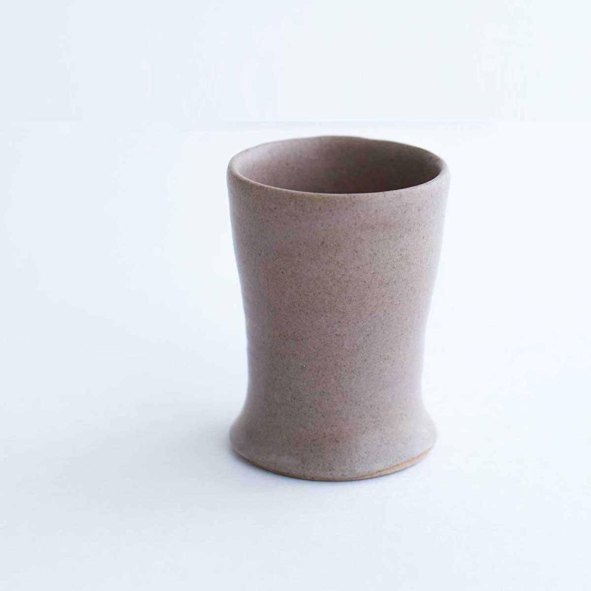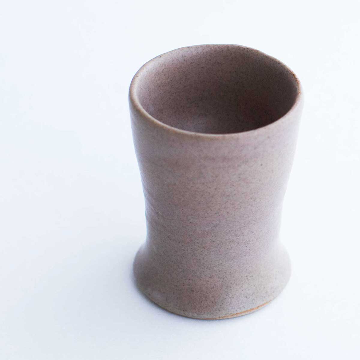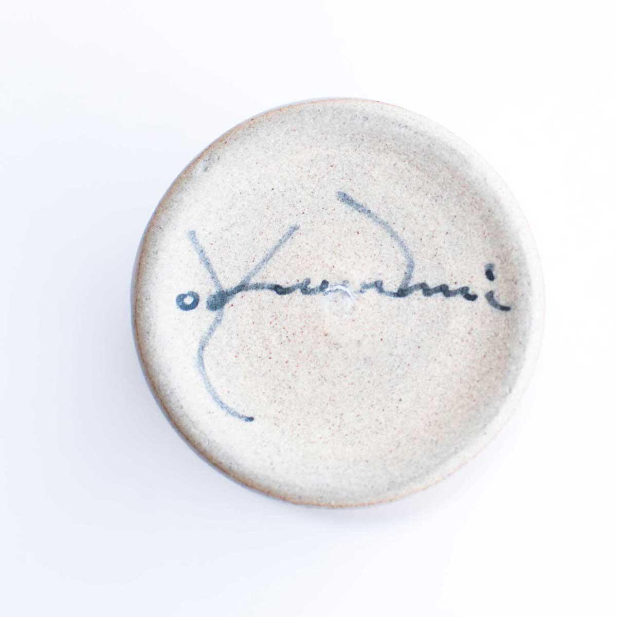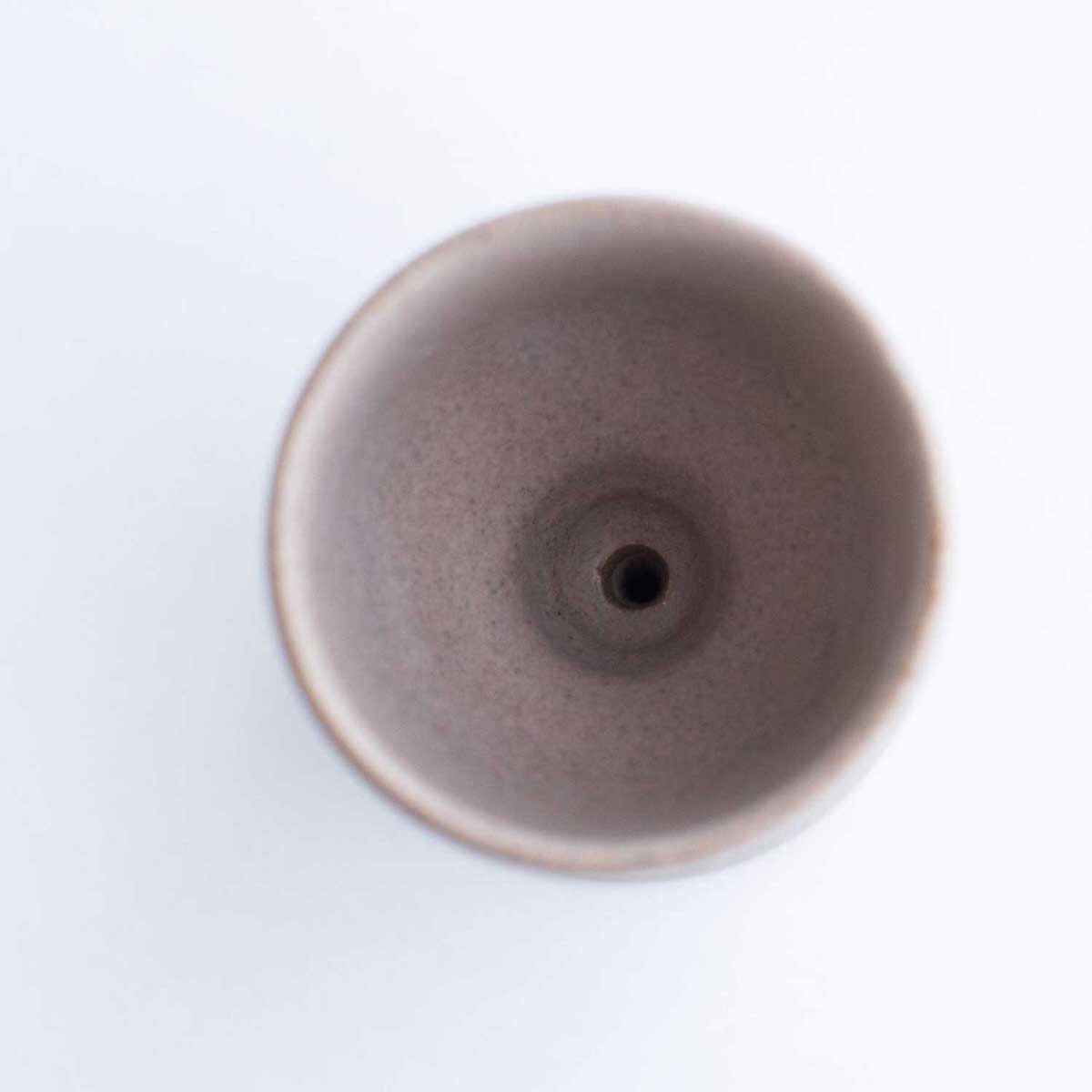 雲仙市の小浜温泉に工房を構えた陶芸家オクウンヒさんの一輪挿しです。小さな底穴に枝を差し込むと、1本のお花でもスッとそびえ立つような工夫が施されております。