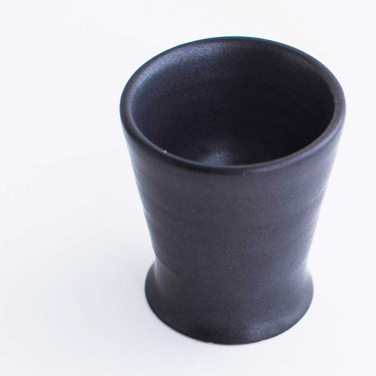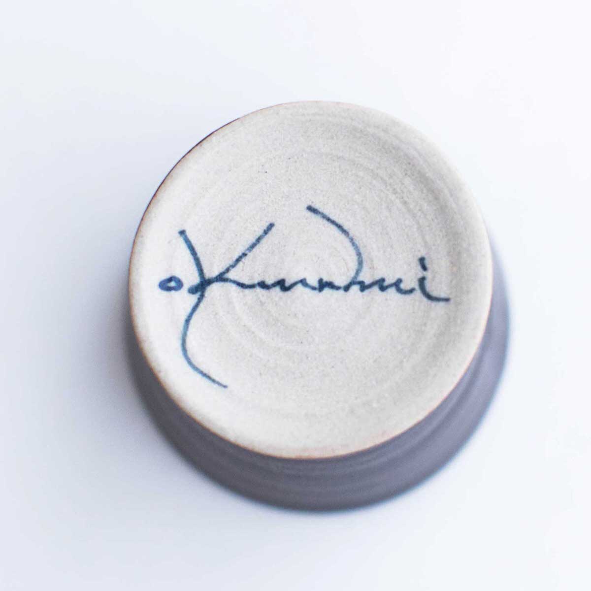 雲仙市の小浜温泉に工房を構えた陶芸家オクウンヒさんの一輪挿しです。小さな底穴に枝を差し込むと、1本のお花でもスッとそびえ立つような工夫が施されております。