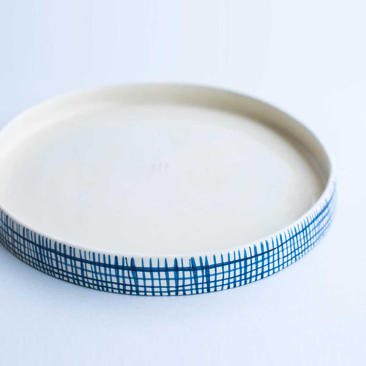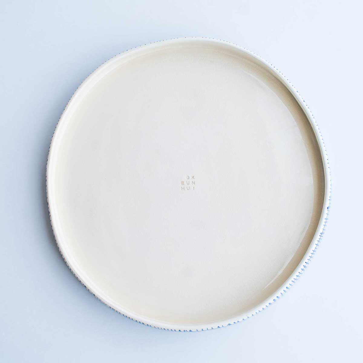 雲仙市の小浜温泉に工房を構えた陶芸家オクウンヒさんの縁付絵皿です。大きめサイズで大皿としてお料理や季節のフルーツを盛ったり、色々な用途にお使いいただけます。